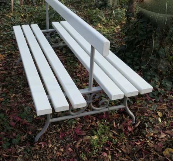 Référence : JAR 012 Banc d’extérieur ou d’intérieur ,armature en fer, lattes en bois . Des rondelles fixées au bout des pieds permettent de ne pas s’enfoncer dans le sol (visibles -difficilement- sur la photo […]