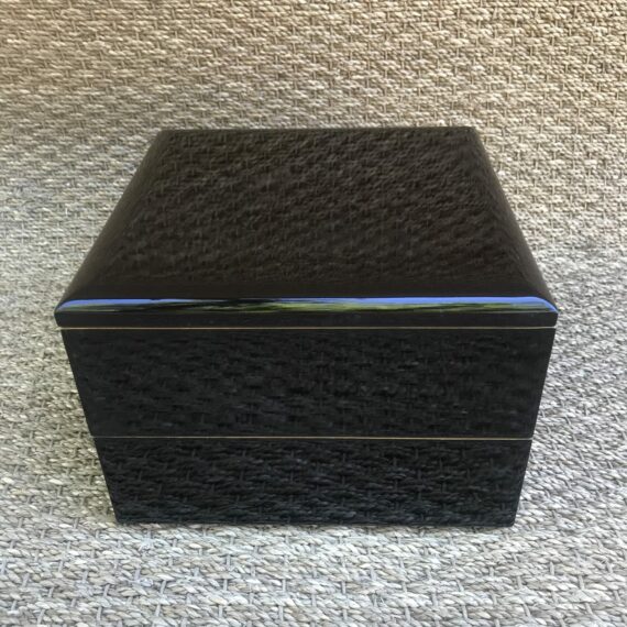 Ref : JD 165 Ancienne mesure à grains et à riz fabriquée comme un tonneau , avec des « douelles » en bois de paulownia (kiri) et cerclage en fer. Poignées sculptées dans des pièces de bois […]