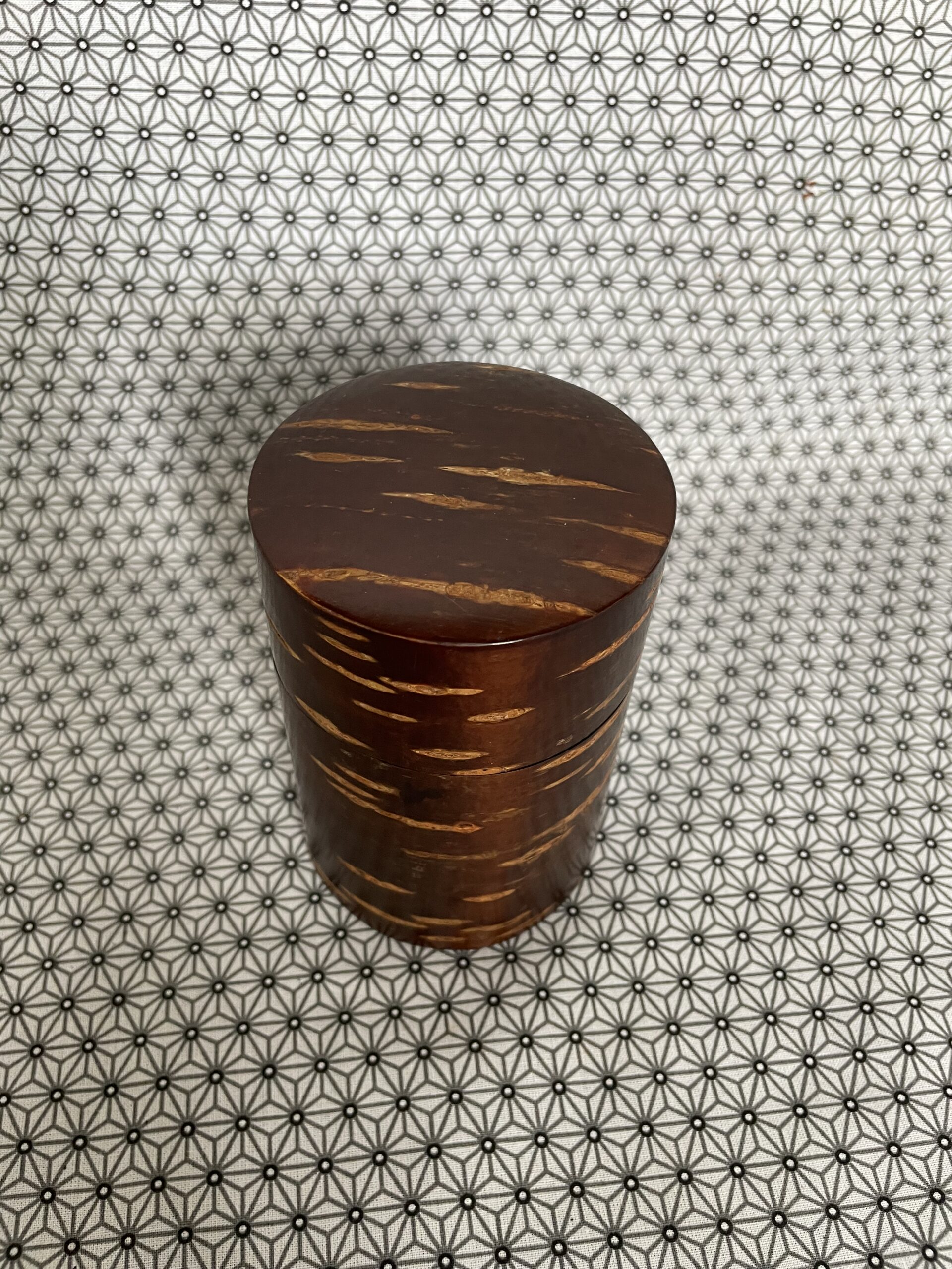 Boite à thé entièrement fabriquée en écorce de cerisier. Originaire de la préfecture d’Akita où poussent de nombreuses variétés de cerisier. Complète avec son couvercle d’étanchéité afin de conserver tous les arômes du thé.