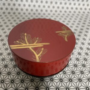 Petite boite en bois laqué (natsume) servant à contenir la poudre de thé matcha .Cette boite ,fréquemment manipulée par les invités lors de la cérémonie du thé, est l’objet de toute leur attention.