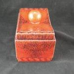 Rouge sang de boeuf très éclatant et émail très brillant – pas facile à rendre en photo ( la plus ressemblante étant celle avec le couvercle à part)