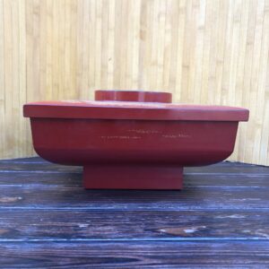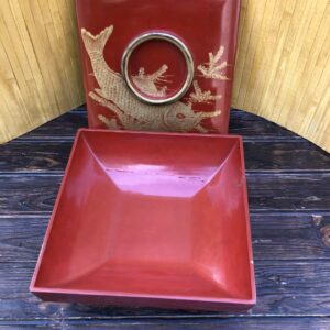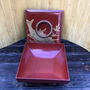 Le décor est parfaitement conservé grâce au fait que la laque a été incisée puis remplie de dorure évitant de ce fait l’usure par frottements. Epoque Showa vers 1950/60.