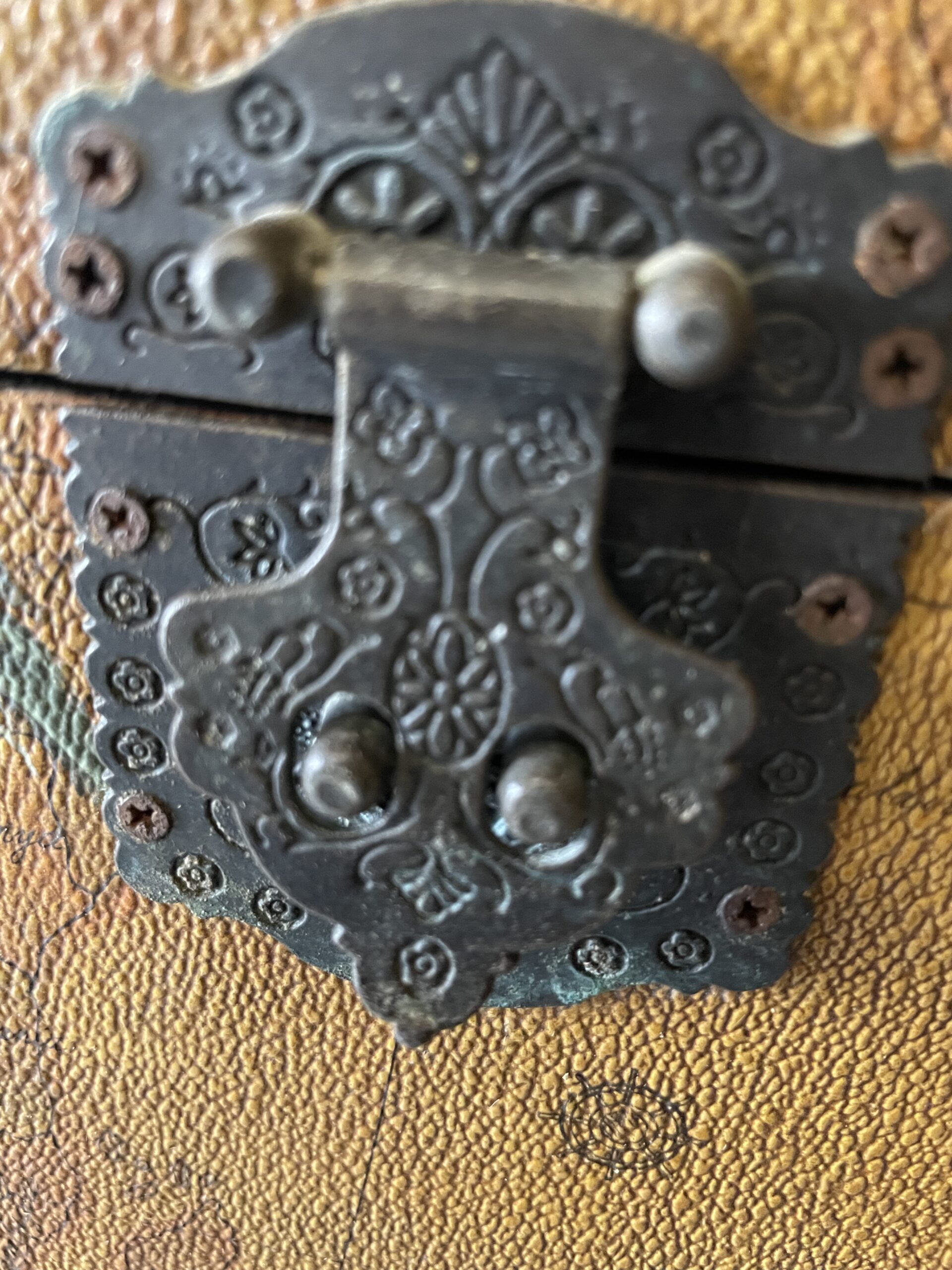 Boîte de protection de forme atypique , poignées et serrure d’inspiration orientale.