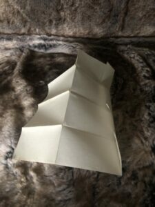 L’intérieur renferme un miroir et deux logements : l’un avec neuf feuilles de papier pliées ,l’autre avec une pochette contenant de très fines baguettes souples …en paille de riz (?).