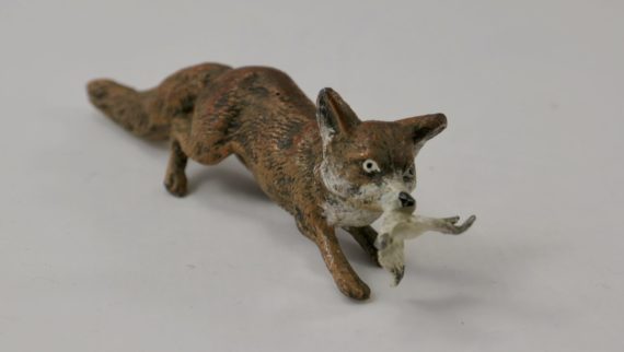 Référence: CM 018 Sujet animalier très réaliste en plomb de Nüremberg. Renard avec un volatile dans la gueule . Bel état. Longueur: 10cm Hauteur: 3cm […]