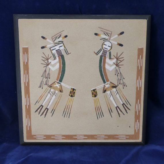 Référence: T 011 Tableau réalisé à l’aide de sable de différentes couleurs collés sur un panneau de bois. Artisanat de la tribu des Hopis (Arizona-USA).Cadre réalisé avec une petite baguette en bois noirci. Tableau acheté […]