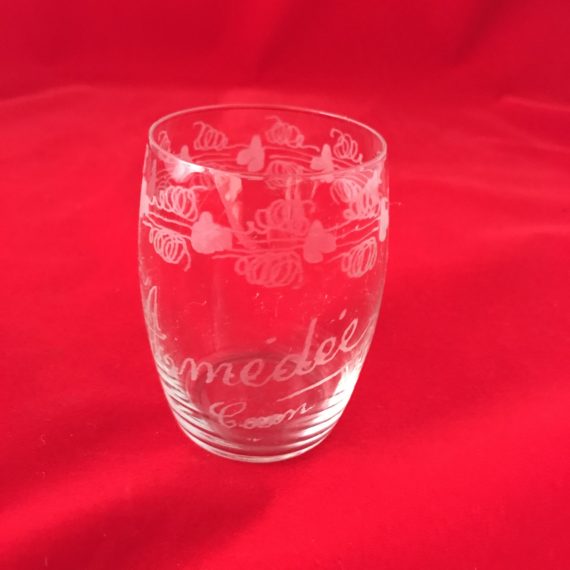 Référence: CV 014 Gobelet tonneau en verre fin ,gravé à la roue » Amédée Caen 1913″, que s’est-il passé cette année là à Caen ? H : 9 cm […]