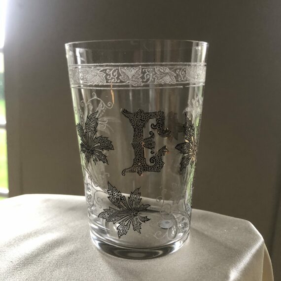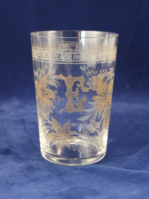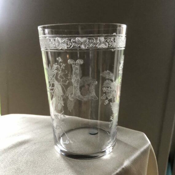 Réf : GV 65 Beau gobelet en cristal chiffré L . Belle gravure à l’acide de fleurs et branchages occupant tout le tour du verre, frise florale. Gravure de la lettre très élaborée. Fin XIXème […]