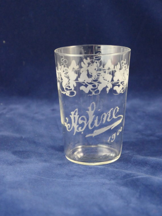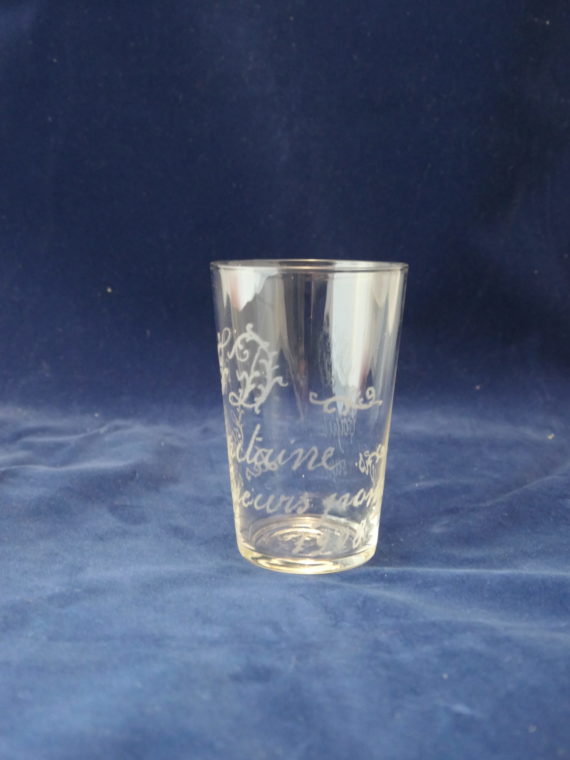 Référence: CV 029 Gobelet en verre gravé à la roue « Denis » et daté 1895 . H : 8,8 cm Prix : 30 Euros […]