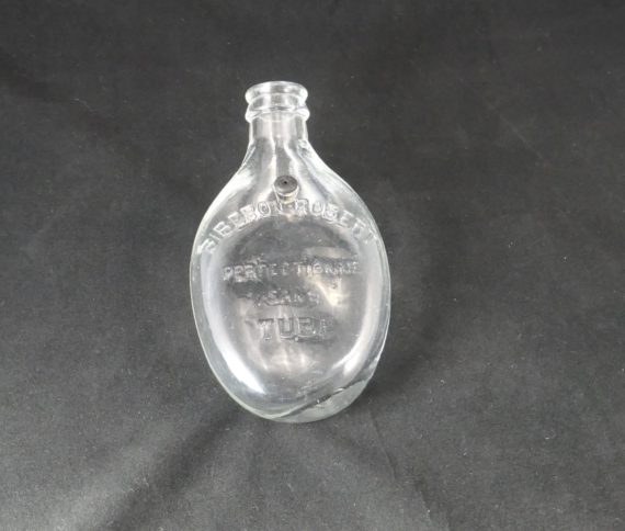 Référence: CV 015 Biberon en verre de forme sabot posé à plat , marque en relief » Robert perfectionné sans tube ». En 1910, Edouard Robert ,inventeur du biberon éponyme commercialise ce nouveau modèle suite à […]