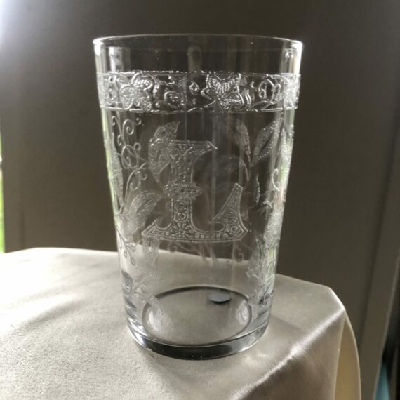 Réf : GV 70 Beau gobelet en cristal chiffré A. Belle gravure à l’acide de fleurs et branchages. Fin XIXème – début XXème. Probablement Saint Louis ou Baccarat .Parfait état. Gravure du décor identique à […]