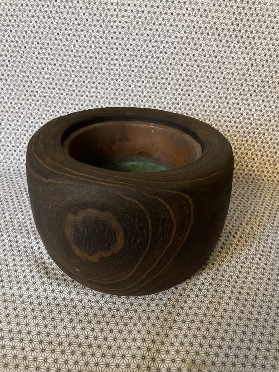 Ref JD 219 Bel Hibachi rond ,braséro Japonais ,en bois de paulownia , intérieur en cuivre .Directement tourné dans un tronc entier on peut bien apprécier les cernes du bois .Du fait de la très […]