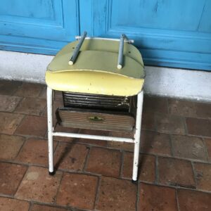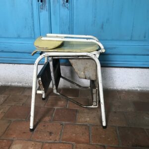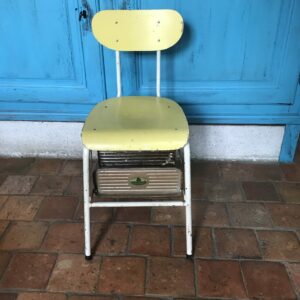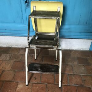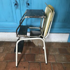Originale chaise escabeau portant la marque J.DUMOND St Julien du Sault – Yonne tel: 24 (!).