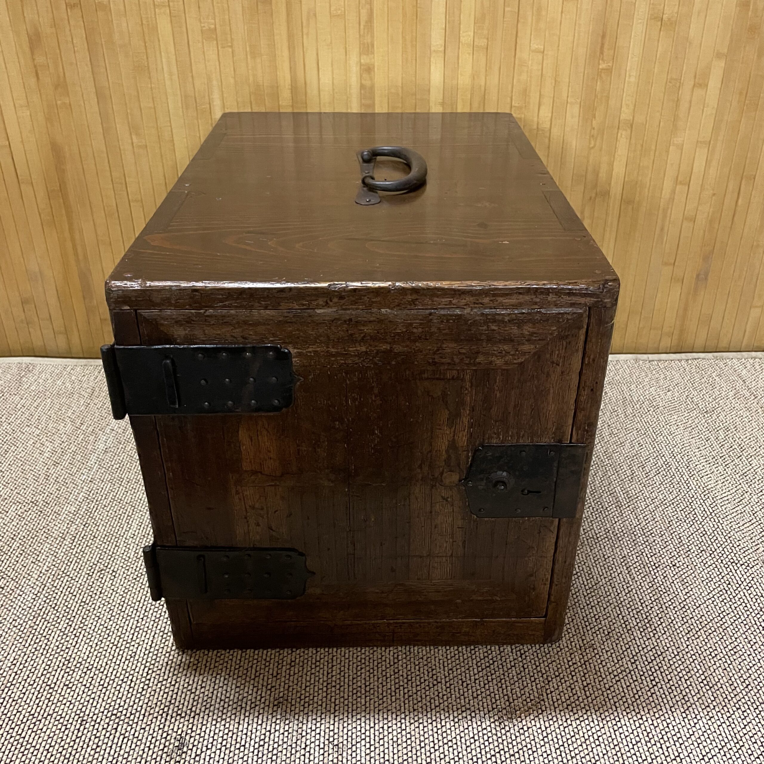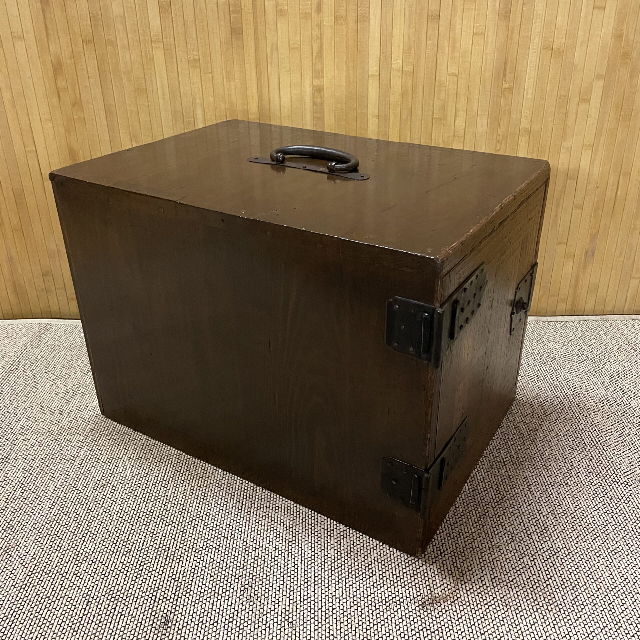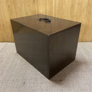 Coffre de commerçant ,pour ranger des documents, poignée de transport sur le dessus.