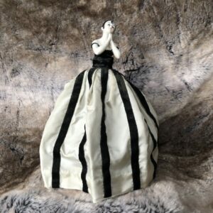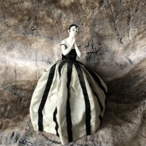 Demi figurine « Garçonne » avec son habit d’origine en satin de soie et velours, ensemble monté sur une armature métallique recouverte de tissu.