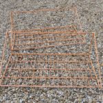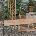 Deux « étagères » à accrocher en acier recouvert de plastique orange. Grande profondeur , les anciens propriétaires y stockaient des valises. Vers 1960