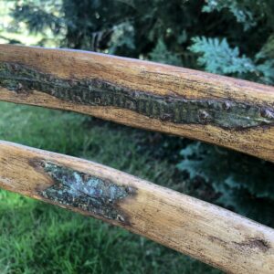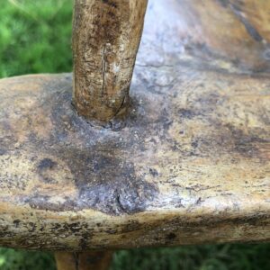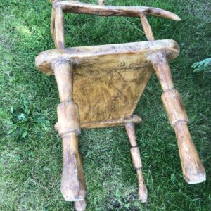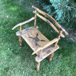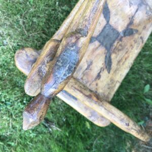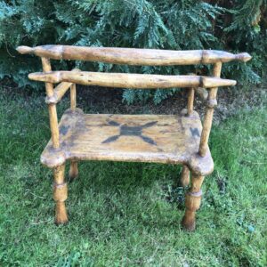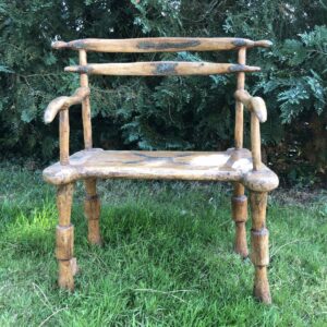 Fauteuil africain ancien en bois à motifs en laiton probablement Senoufo ( Côte d’ivoire) mais nous avouons notre (grande) méconnaissance de l’Art Africain. Jolie patine , le bois semble enduit -voir jonction des pieds avec l’assise.