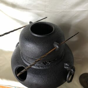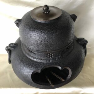 La partie inférieure (furo) reçoit le charbon de bois et la partie supérieure (gama) sert à faire bouillir l’eau qui sera puisée à l’aide d’une louche en bois pour faire le thé. Couvercle traditionnellement en bronze avec la prise en forme de sphère ajourée tournant.
