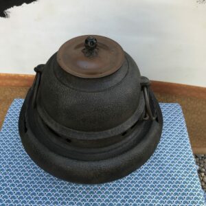 La partie inférieure (furo) reçoit le charbon de bois et la partie supérieure (gama) sert à faire bouillir l’eau qui sera puisée à l’aide d’une louche en bois pour faire le thé. Couvercle traditionnellement en bronze avec la prise en forme de sphère ajourée tournante.
