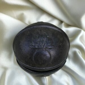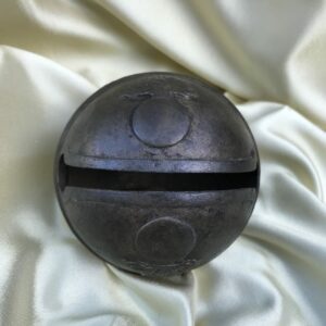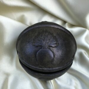 Grelot de cheval en bronze avec un motif à la grenade enflammée de chaque côté de la fente.