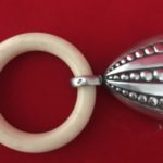 Hochet de berceau Argent 1920 Réference: CD 005 Hochet en Argent, poinçon hure de sanglier. Très bon état. Poids net 6 Grs Dimension sans anneau : 5 cm Prix : 75 Euros Livraison gratuite en France. Autres destinations nous consulter.