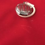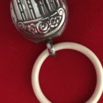 Hochet de berceau Argent 1925 Réference: CD 003 Hochet en Argent, poinçon hure de sanglier . Traces de petites dents ! Poids net : 7 Grs Dimension : 4,5 cm Prix : 60 Euros Livraison gratuite en France. Autres destinations nous consulter.