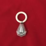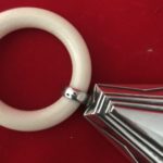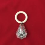 Hochet de berceau Argent 1930 Réference: CD 002 Hochet en Argent ,poinçon hure de sanglier . Très bon état. Poids net 13 Grs Dimension sans anneau : 6 cm Livraison gratuite en France. Autres destinations nous consulter.