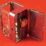 Modèle peu fréquent et très complet . Compartiment pour les allumettes et bougie de rechange, grattoir intérieur et extérieur.