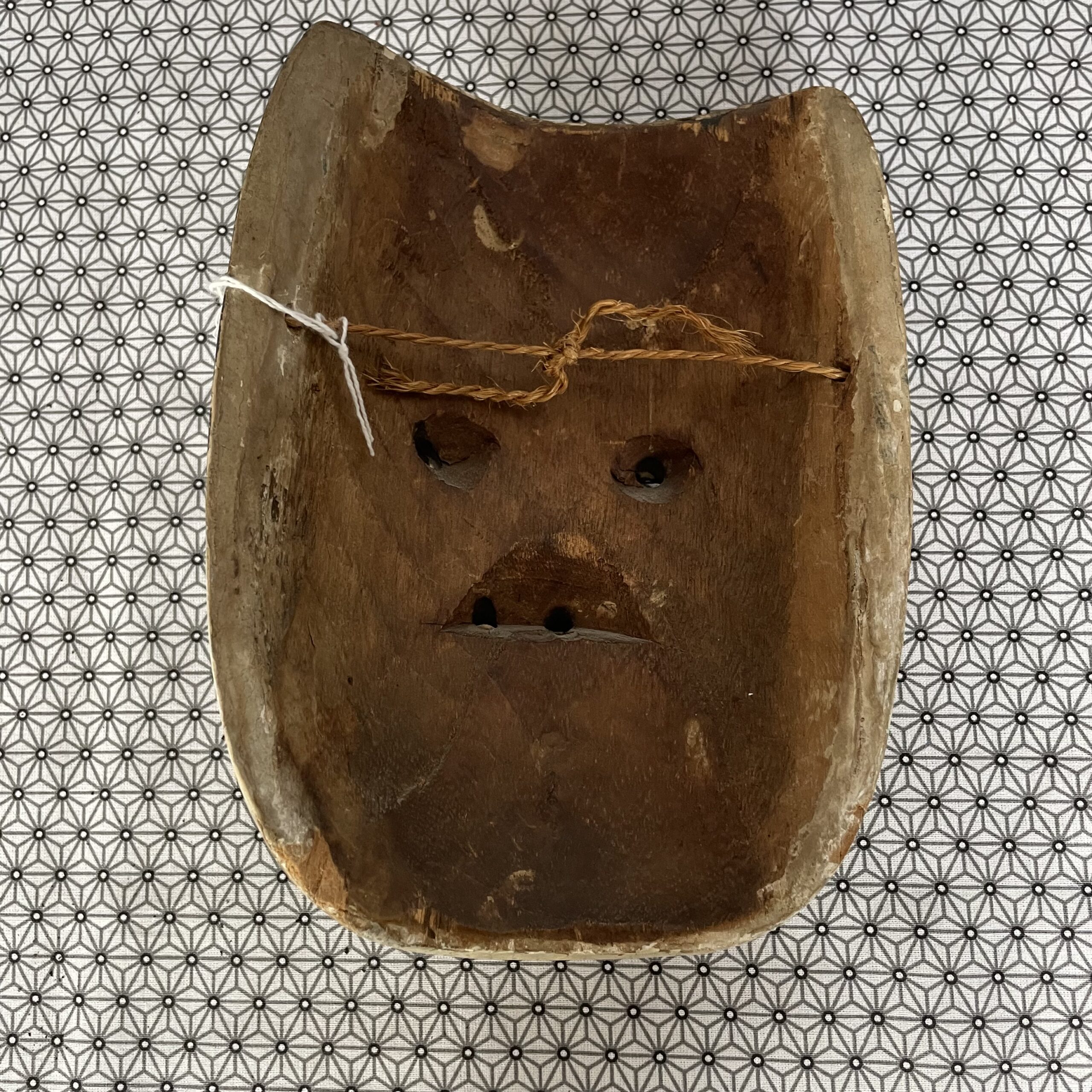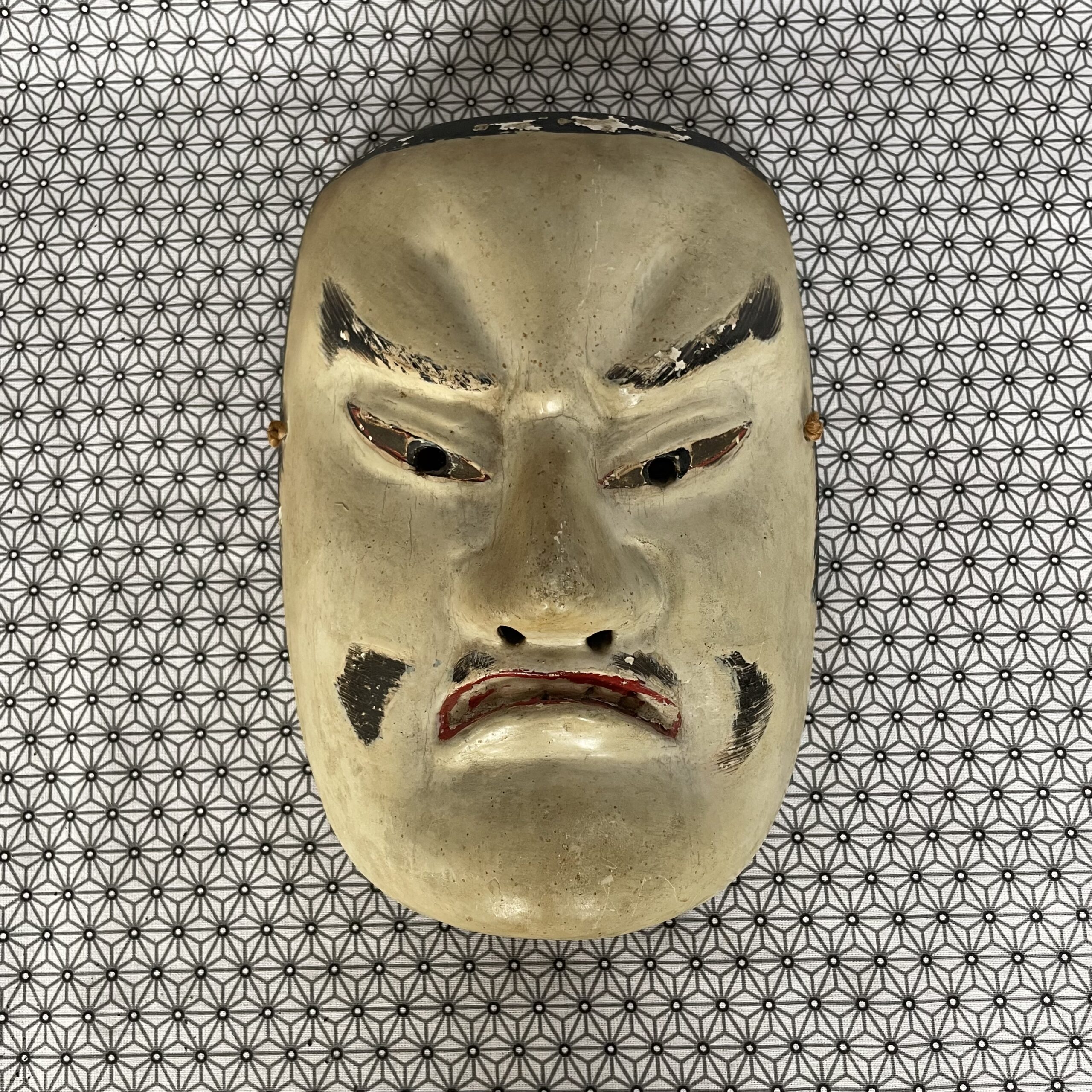 Masque d’homme du théatre No , en bois laqué. Bon état général , quelques usures de laque.