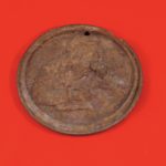 Médaillon en fonte représentant une femme en train de priser du tabac.