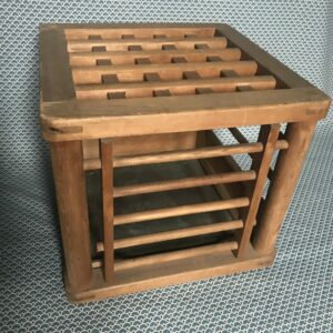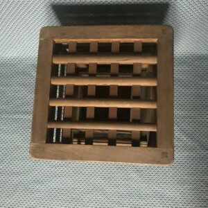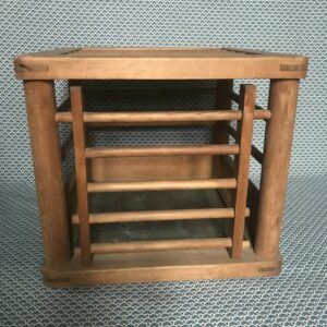 Entièrement en bois .Le fond est recouvert d’une plaque de cuivre. Tampon sous la base.