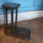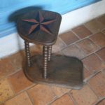 Amusant petit tabouret pour enfant de choeur en chêne , assise marquetée d’une étoile bicolore, pieds chapelets.