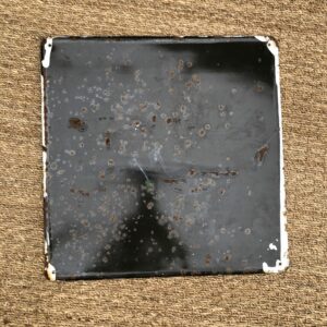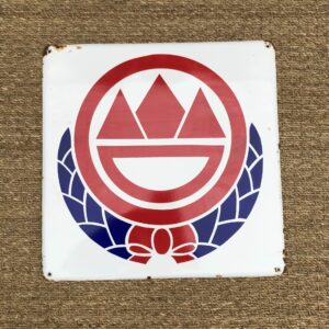 Belle plaque émaillée carrée vintage, représentant le logo d’un fabricant de vélos.