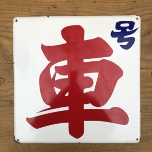 Belle plaque émaillée carrée vintage. Fait partie à l’origine d’un ensemble de six ( voir photo 3 pour l’ensemble de notre stock).Il s’agit de l’enseigne d’un fabricant de vélos , en premier son logo , les deux suivantes son nom et les trois autres la nature de son activité.