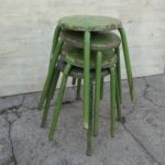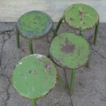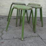 Quatre tabourets métal vert patiné . Etat d’usage (intensif !).