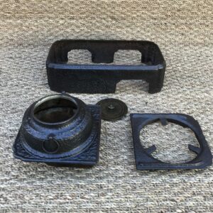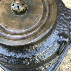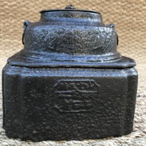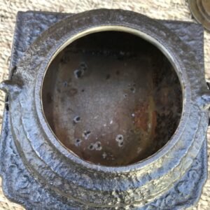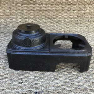 Rare élément en fonte se posant à l’intérieur de l’Hibachi ,composé d’une base , d’un support de bouilloire et d’une bouilloire avec un couvercle en bronze.
