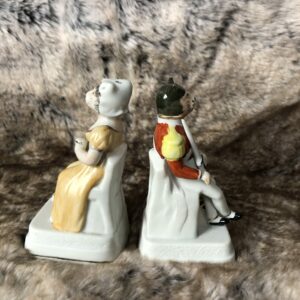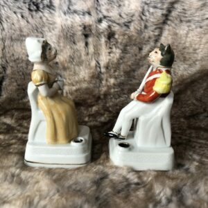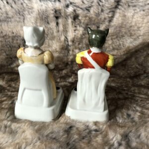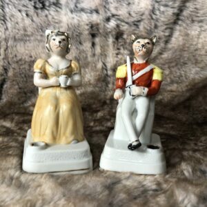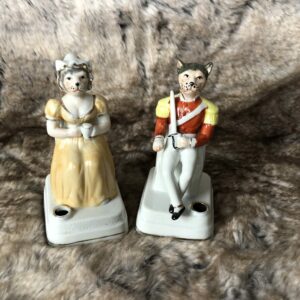 Encriers couple de Chats anthropomorphes. Porcelaine polychrome « Vieux Paris »,pas de marques. Style humoristique très en vogue au tournant du XIX éme et du XXéme siècles.