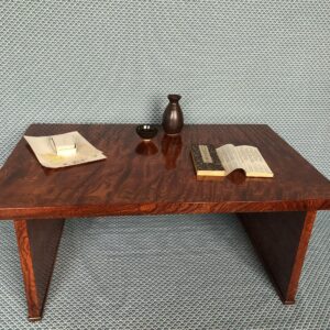Table Japonaise en placage de Zelkova * Le bol et la bouteille à saké sont fabriqués par un potier contemporain et sont visibles dans les catégories Japon/Divers et Grenier/Céramique *