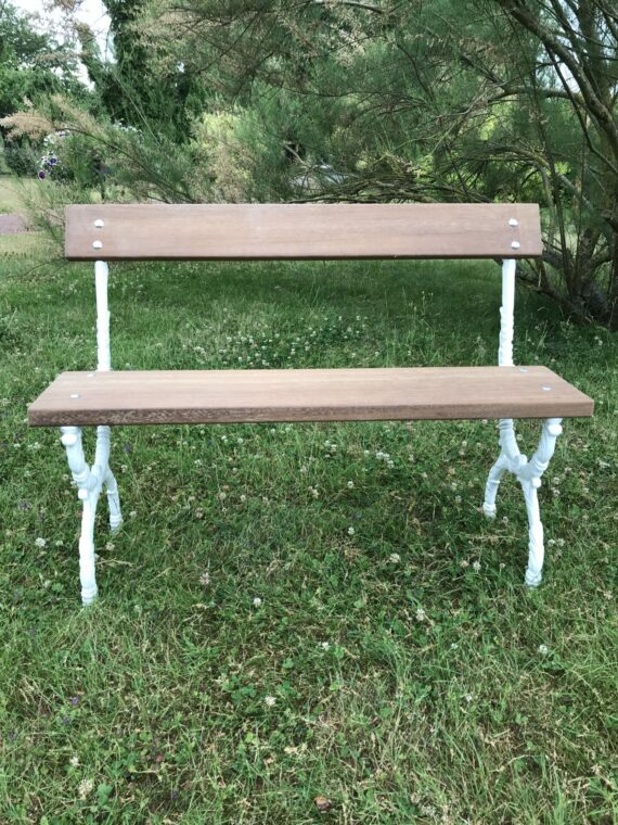 Réf: JAR 33 Prêt à poser dans le jardin! Banc réalisé avec deux pieds en fonte anciens (milieu XIXè) repeints avec une peinture spéciale extérieur. Les deux planches en iroko sont neuves. Elles ont été […]
