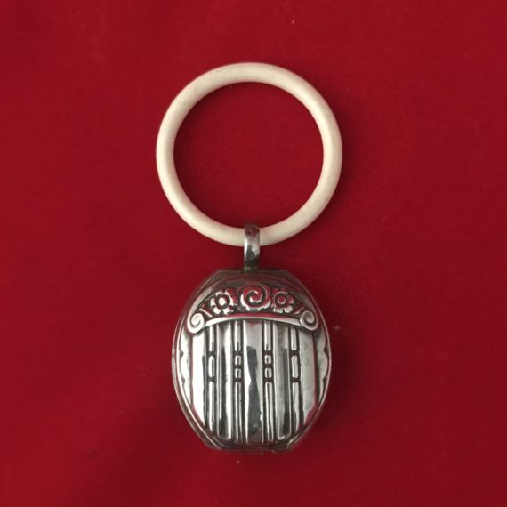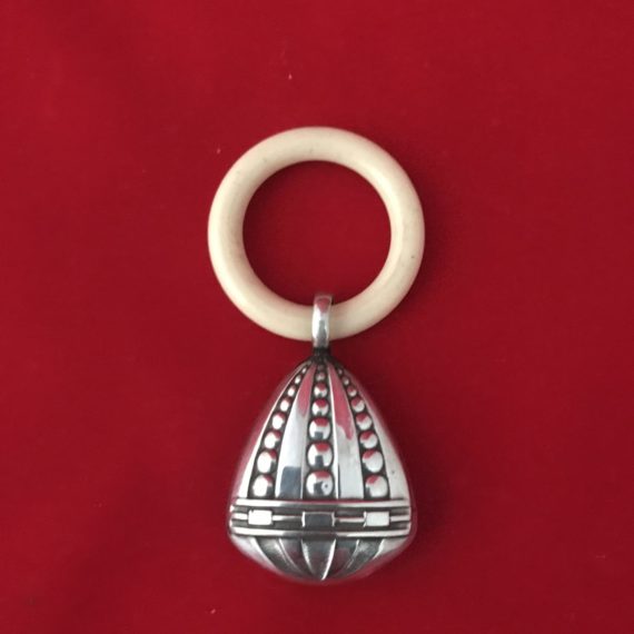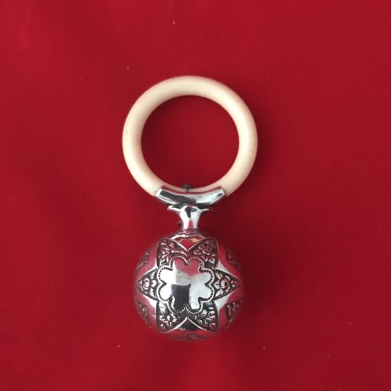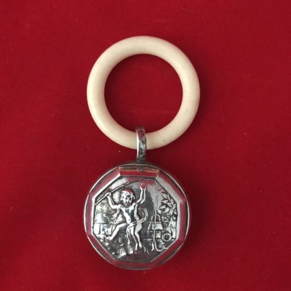 Réference: CD 003 Hochet en Argent, poinçon hure de sanglier . Traces de petites dents ! Poids net : 7 Grs Dimension : 4,5 cm […]