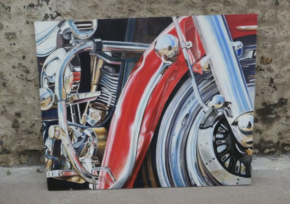Référence: T 002 Grande acrylique sur toile représentant l’avant d’une moto Harley Davidson vue de 3/4. Oeuvre du peintre Irribaria , Mer (41),sans plus de renseignements. Un petit trou visible sur la deuxième photo. Chassis […]