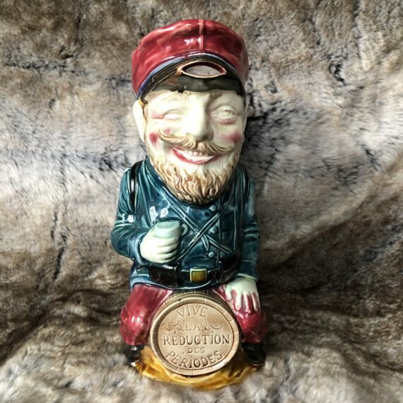 Ref : GC 32 Pichet en faïence d’Onnaing représentant un conscrit trinquant à la réduction de la durée du service militaire ! Très bon état , marques en creux H: 28 cm Livraison gratuite en […]