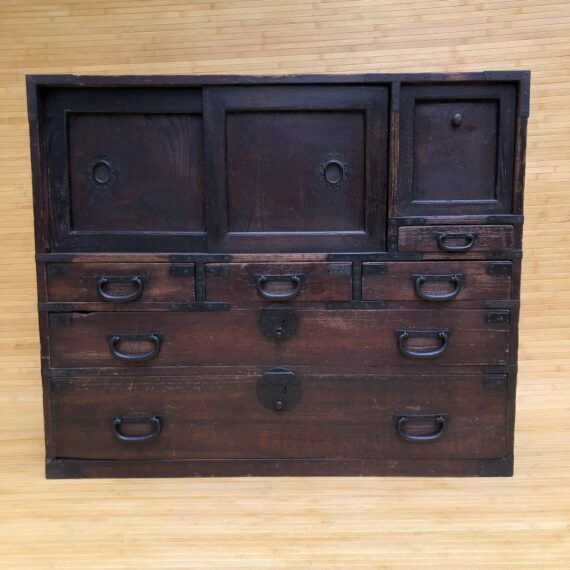 Réf : JM 182 Gifu chôba tansu , meuble de marchand pour les documents en bois de cyprès (Hinoki) .Deux portes sur glissières et 7 tiroirs dont deux derrière une porte sans serrure . La […]
