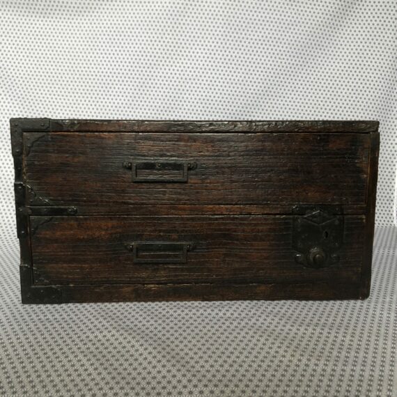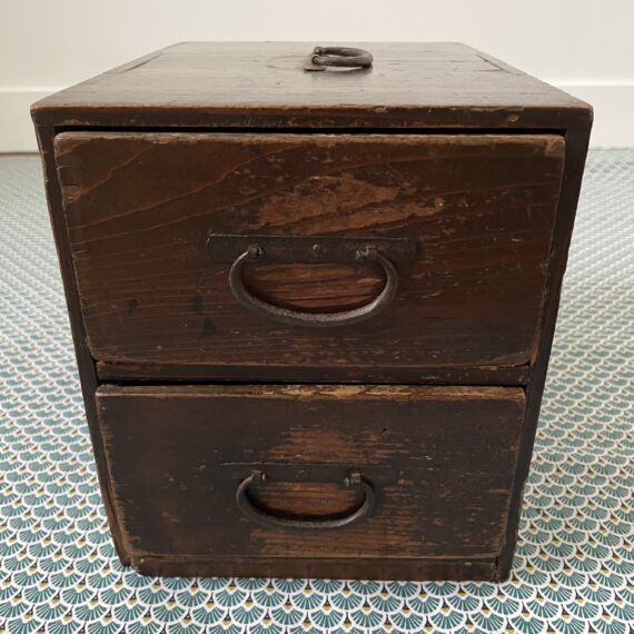 Réf : JD 214 Tout petit meuble de commerçant à deux tiroirs en paulownia (kiri) laqué. Belle patine ancienne avec usures et petit manque au coin inférieur en façade ( voir photo 9). Idéal à […]