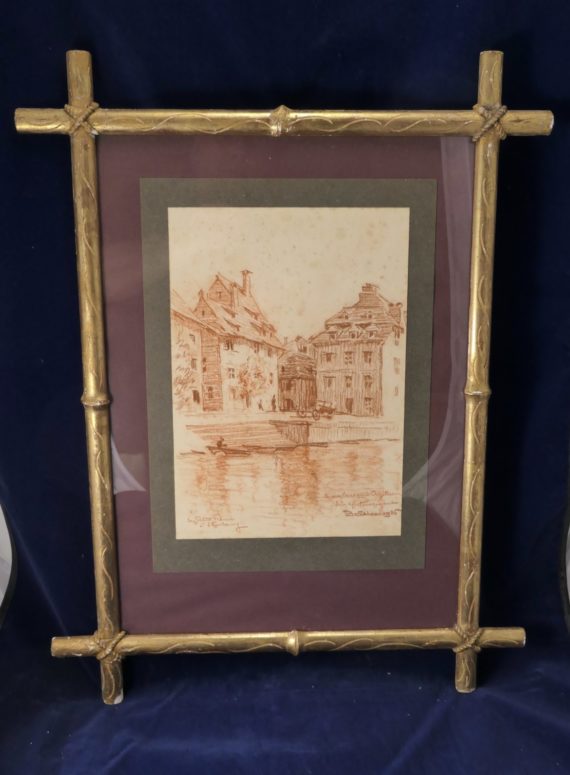 Référence: T 012 Deux dessins à la sanguine représentant le quartier de la Petite France à Strasbourg . Signées ,datées Ansaloni 1926 , l’une des deux dédicacée à ses bons amis …..Cadres en bois doré […]