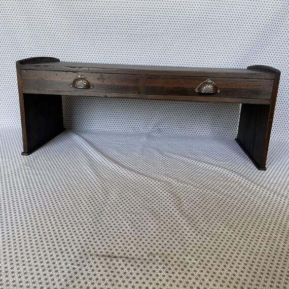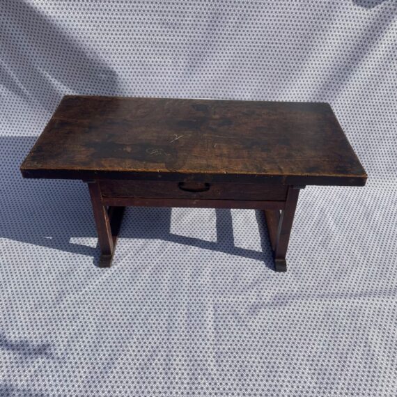 Réf: JM 183 Petite table à écrire avec un tiroir, beaucoup utilisée si l’on en juge par les taches et les deux graffitis gravés sur le plateau (photo 5). Très stable malgré son âge.Belle épaisseur […]