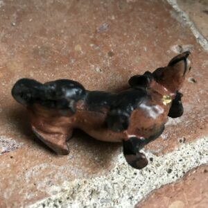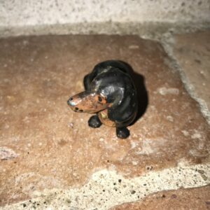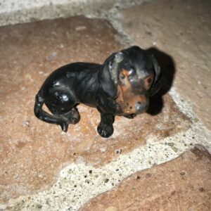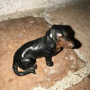 Charmant teckel en plomb de Nüremberg. Début XXème.