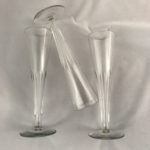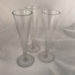 Série de trois flûtes anciennes en cristal facetté dites impossibles , car impossible à nettoyer -mais ça n’est pas vrai !. Le champagne descend jusqu’au pied de la flûte et la remontée des bulles n’en est que plus spectaculaire. Milieu XIXème