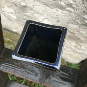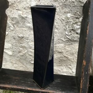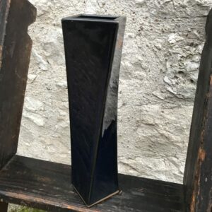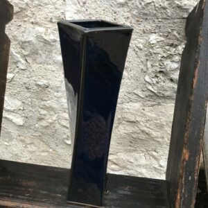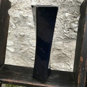 Forme « twist » originale et belle hauteur pour ce vase couleur bleue nuit finement mouchetée.
