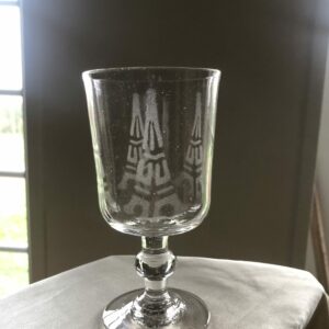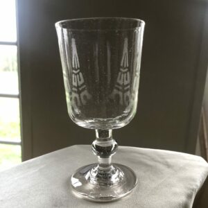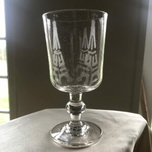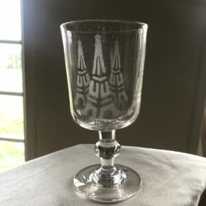 Rare verre à décor sablé de quatre Tours Eiffel, probablement vendu lors de l’exposition universelle de Paris en 1889 en guise de souvenir. Parfait état.